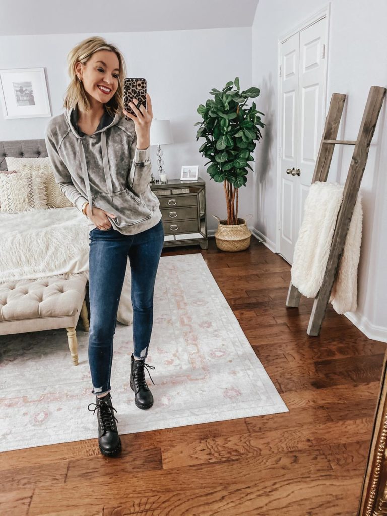 OUTFIT ABOVE: Acid Wash Hoodie // Skinny Jeans // Combat Boots // Earrings